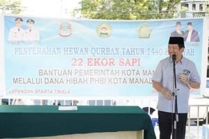 MANADO – Dalam rangka Idul Adha 1439 H, Pemerintah kota Manado Menyerahkan bantuan Hewan Qurban 22 Ekor Sapi kepada 22 Mesjid se-Kota Manado Melalui dana Hibah PHBI Kota Manado yang bertempat di Lapangan Sparta Tikala, Jumat(09/08/19).