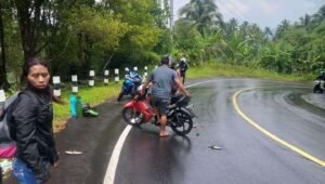 Sangihe, Liputan15.com – Sejumlah kendaraan roda dua yang yang melewati jalur Tahuna menuju kampung lenganeng maupun sebaliknya ada beberapa yang mengalami kecelakaan tunggal yang diakibatkan adanya tumpahaan minyak solar di ruas jalan tersebut.
