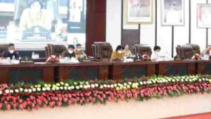 Bagi anggota DPRD dan para Kadis dan Kaban yang tidak hadir secara fisik, mengikuti rapat ini secara Online/Virtual yang dilakukan dengan menggunakan teknokogi Video Conference melalui Aplikasi Zoom Cloud Meeting yang diakses pada Handphone/Laptop dari tempat masing-masing.