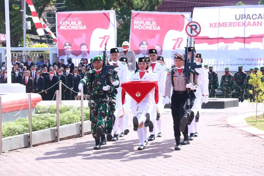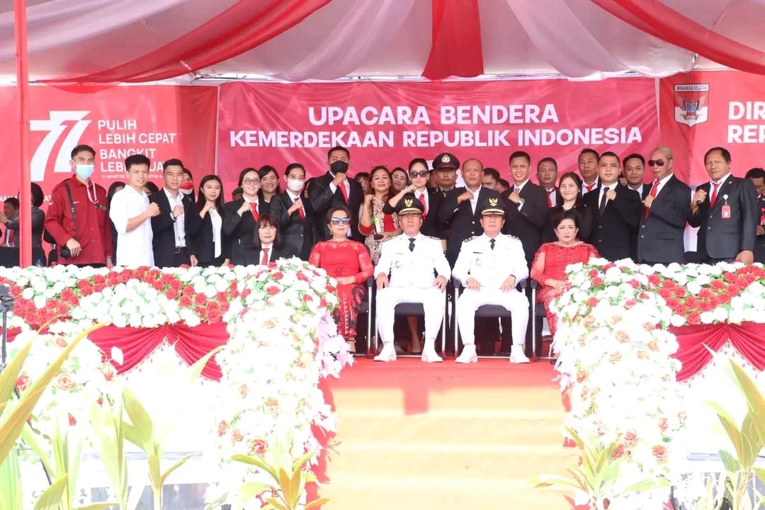 Bupati Franky Doni Wongkar SH menjadi Inspektur Upacara dalam rangka memperingati HUT ke-77 RI. Selama ini dihelat dalam situasi pandemi dan berlangsung di Kantor Bupati Minahasa Selatan, tahun ini digelar berbeda.