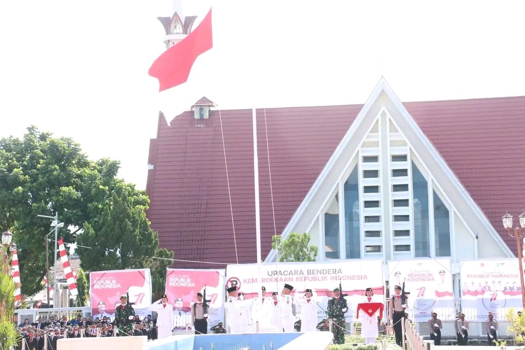 “Untuk kegiatan upacara bendera memang kami sepakat untuk dilaksanakan di sini. Karena kalau di sini maka akan ada banyak masyarakat yang terlibat menyaksikan dan mengikuti secara langsung upacara HUT RI ke-77 ini,” ungkap Bupati FDW.