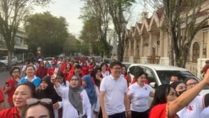 Setelah mengikuti jalan sehat, Walikota Andrei Angouw melanjutkan perjalanan menuju Pasar Bersehati.