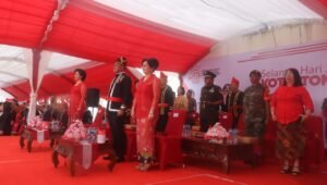 Perwakilan Dandim 1302 Minahasa Kapten Arm Zadrak Carles Sonlay, Sekot Edwin Roring SE ME bersama jajaran pejabat, para tokoh agama dan tokoh masyarakat, Ketua TP PKK Kota Tomohon Ny drg Jeand’arc Senduk-Karundeng bersama Sekretaris TP PKK Ny Eleonora Lumentut-Sangi.