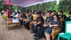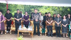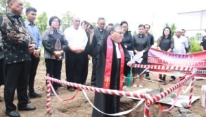 Gubernur Olly mengatakan, kita bersyukur kepada Tuhan karena atas tuntunan dan perkenaannya kita bisa bersama sama di sini. Dalam rangka ibadah peletakan batu pertama untuk pembangunan gereja.