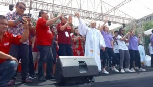 Dihadiri puluhan ribu remaja se-GMIM, ibadah yang terpusat di Lapangan Sepakbola Kaima ini dipimpin oleh wakil ketua Sinode, Pdt. Dr. Adolf Wenas MTh