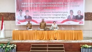 Kepala Dinas Pendidikan Bolmong Renti Mokoginta mengatakan Bimtek ini berlangsung selama enam hari yang terbagi dua. Yakni guru SD dilaksanakan tanggal 5-7 sedangkan SMP dilaksanakan tanggal 8-10. Bimtek yang dilaksanakan ini mengangkat tema ‘Lebih Meningkatkan Kompetensi Guru Melalui Literasi Kita Mengenal Dunia Menuju Kabupaten Bolaang Mongondow Maju’. “Bimtek penulisan karya ilmiah ini dalam rangka pengusulan kenaikan pangkat dan peningkatan kapasitas guru jenjang SD dan SMP,” kata Kadis Pendidikan Bolmong Renti yang didampingi Kepala Bidang Pembinaan Ketenagaan Dinas Pendidikan Hance Mokodompit.