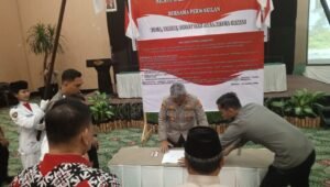 Para perwakilan organisasi masyarakat tersebut pun berikrar untuk siap menjaga pemilu 2023 dengan damai.