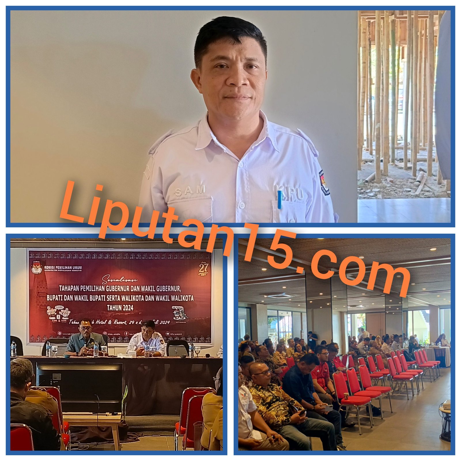Sangihe, Liputan15.com – Komisi Pemilihan Umum Daerah (KPUD) Kabupaten Kepulauan Sangihe menggelar acara Sosialisasi Tahapan Pemilihan Gubernur dan Wakil Gubernur, Bupati dan Wakil Bupati, serta Walikota dan Wakil Walikota Tahun 2024. Acara ini berlangsung di Ballroom Bunaken Tahuna Beach Hotel and Resort pada Senin (29/07/2024).