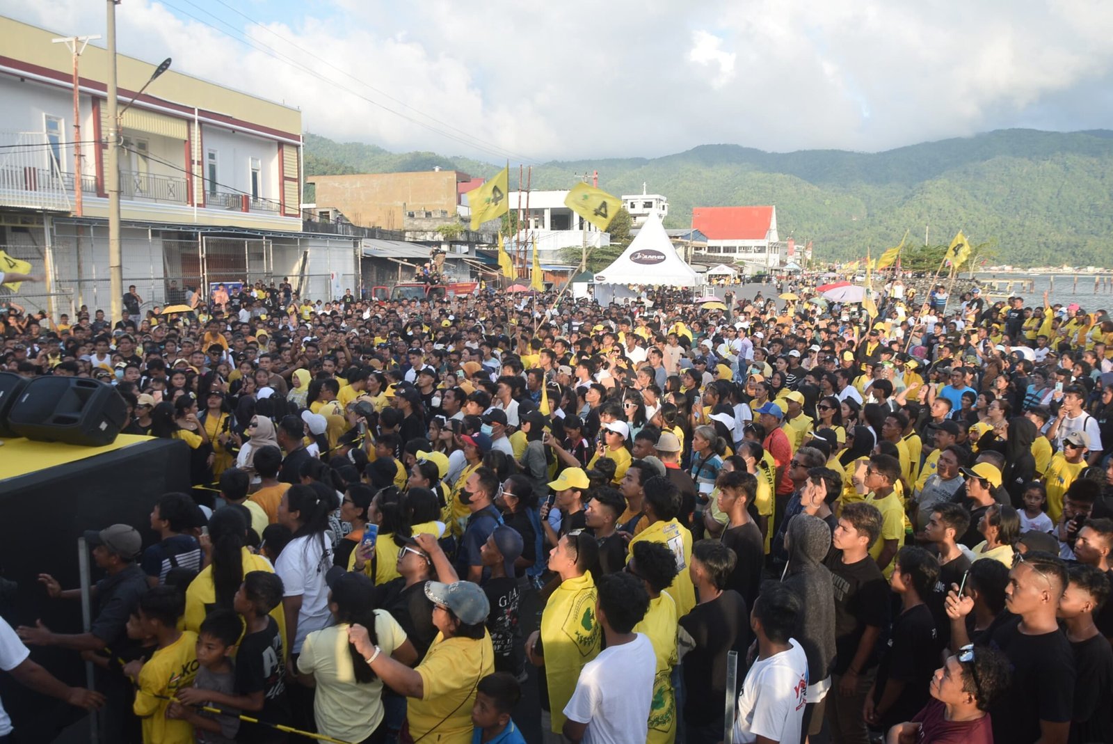 Pasangan yang diusung Partai Golkar dan Demokrat ini menjadi Paslon ke tiga dari empat Paslon yang menggelar kampanye rapat umum sesuai jadwal KPU Sangihe.