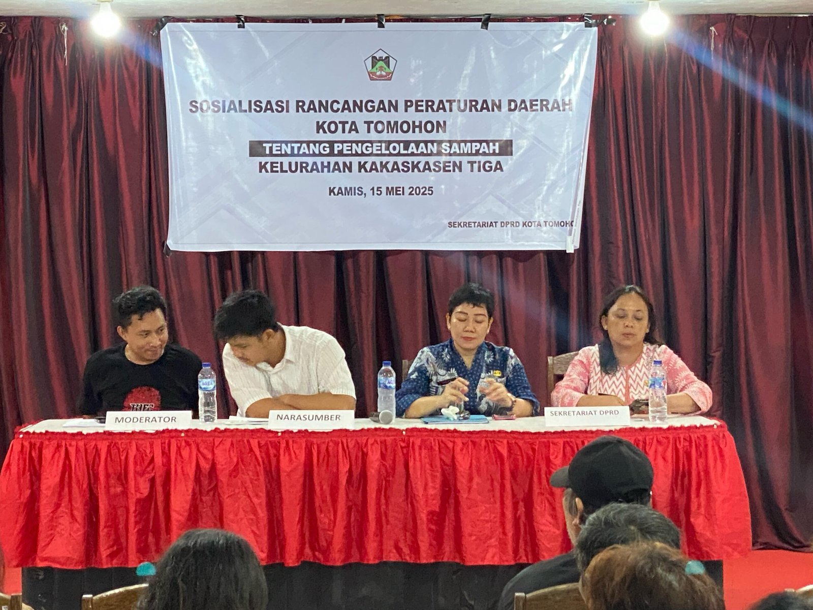 Dalam kegiatan ini, turut hadir narasumber dari Dinas Lingkungan Hidup (DLH) Kota Tomohon yang memaparkan isi Ranperda serta menjelaskan teknis pengelolaan sampah, mulai dari pemilahan di rumah tangga hingga pengangkutan dan pengolahan akhir.