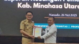 Liputan15.com,Minut – Prestasi jangan berhenti bukan hanya menjadi slogan dari Bupati Joune Ganda dan Wakil Bupati Kevin Lotulung, tetapi ini di buktikan dengan kerja nyata sehingga Kabupaten Minahasa Utara mencetak sejarah baru dengan meraih predikat opini Wajar Tanpa Pengecualian (WTP) untuk ke Empat kalinya secara berturut – turut.