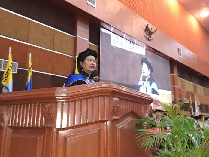 Acara ini berlangsung khidmat dengan penyampaian wejangan langsung dari Direktur Polimdo, Dra. Maryke Alelo, MBA, di Auditorium Prof. Rudy Tenda.