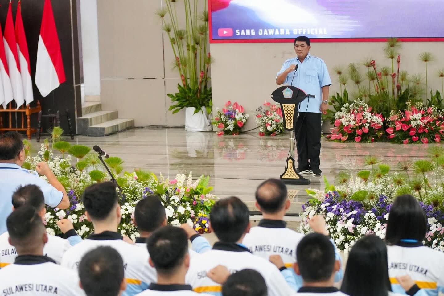 Dalam sambutanya, Gubernur memberikan semangat dan motivasi kepada seluruh atlet agar dapat meraih prestasi terbaik dan mengharumkan nama Sulawesi Utara di tingkat nasional.