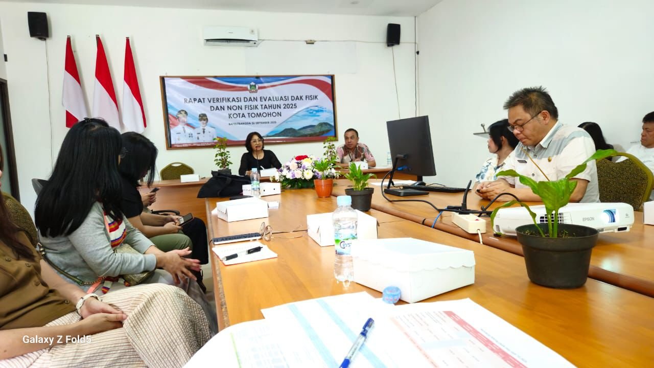 LIPUTAN15.COM— Pemerintah Kota Tomohon melalui Badan Perencanaan, Penelitian dan Pengembangan Daerah (Bapelitbangda) melaksanakan Rapat Verifikasi dan Evaluasi Dana Alokasi Khusus (DAK) Fisik dan Non Fisik Tahun 2025, bertempat di Kantor Bapelitbangda pada Jumat, 26 September 2025.