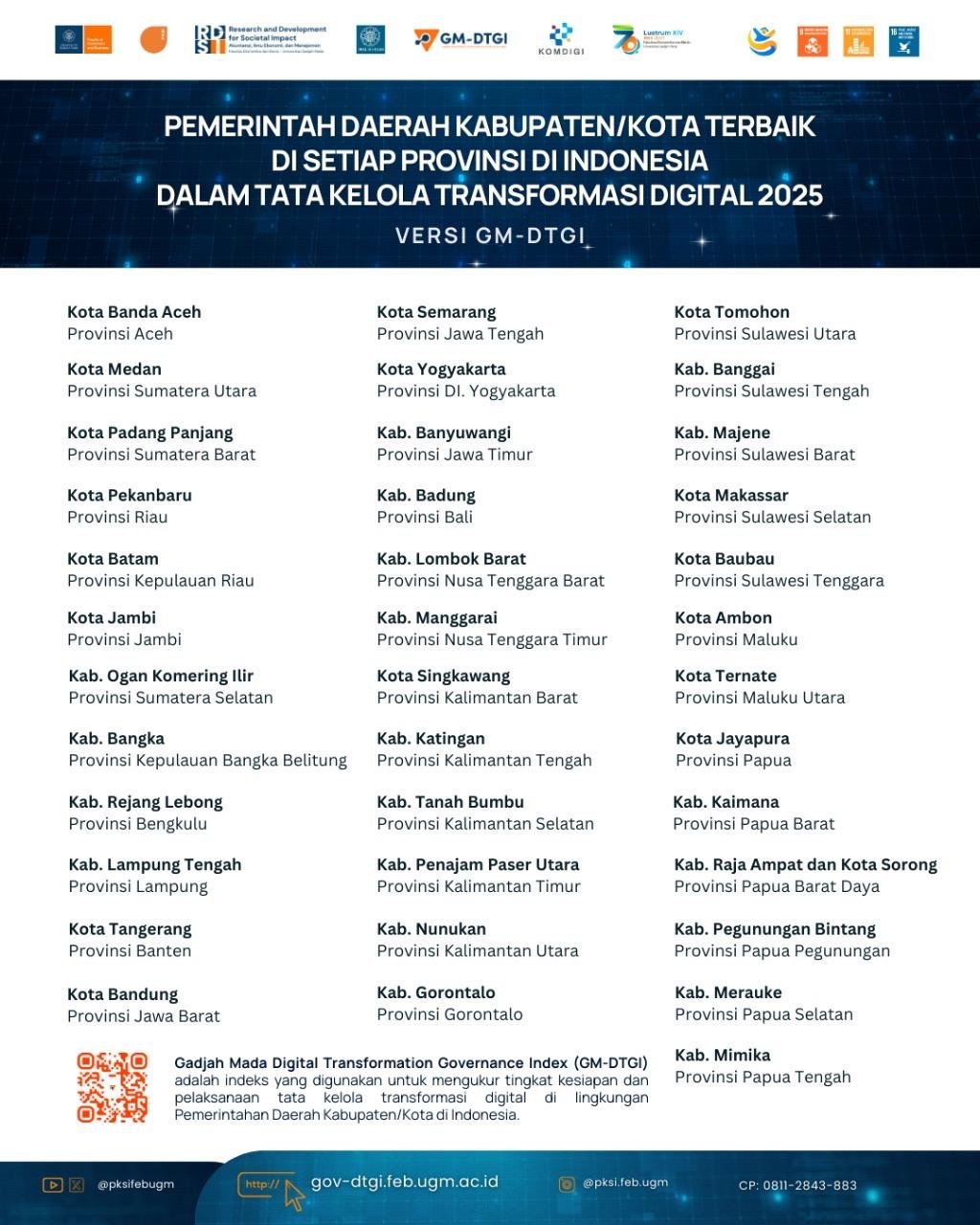 Tomohon menjadi satu-satunya kota di Sulawesi Utara yang berhasil meraih penghargaan prestisius ini. Pengakuan tersebut diberikan setelah melalui serangkaian proses evaluasi ketat, mulai dari pengisian kuesioner, wawancara daring, wawancara langsung, hingga verifikasi lapangan yang dilakukan oleh Tim GM-DTGI Universitas Gadjah Mada (UGM).