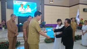 Dalam kesempatan tersebut, Wakil Gubernur Victor Mailangkay mewakili Gubernur Yulius Selvanus menyerahkan surat nikah secara simbolis kepada para pasangan yang mengikuti pencatatan perkawinan.
