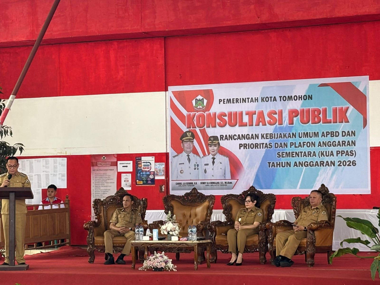 LIPUTAN15.COM,TOMOHON-Wali Kota Tomohon, Caroll J. A. Senduk, S.H., bersama Wakil Wali Kota Sendy G. A. Rumajar, S.E., M.I.Kom., menghadiri kegiatan Konsultasi Publik Rancangan Kebijakan Umum APBD (KUA) dan Rancangan Prioritas dan Plafon Anggaran Sementara (PPAS) Kota Tomohon Tahun Anggaran 2026. Kegiatan ini dilaksanakan di Anugerah Hall, Selasa (14/10/2025).