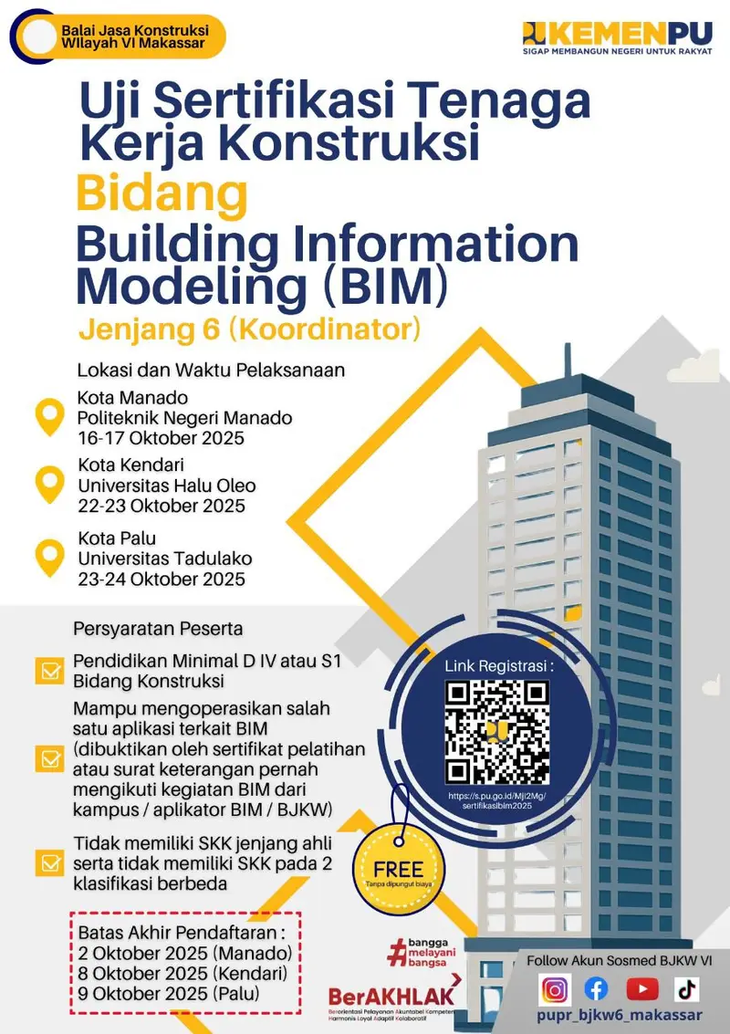 Melalui kegiatan ini, diharapkan tenaga kerja konstruksi di Indonesia, khususnya di Sulawesi Utara, semakin siap menghadapi tantangan industri dengan penguasaan teknologi Building Information Modeling (BIM) yang kini menjadi standar global dalam dunia konstruksi modern.