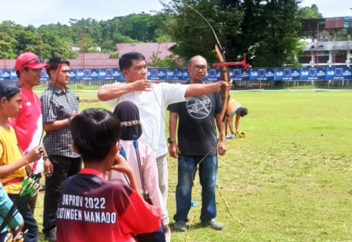 MANADO — Menjelang pembukaan Pekan Olahraga Provinsi (Porprov) Sulawesi Utara 2025, Gubernur Yulius Selvanus memberikan kejutan hangat dengan mengunjungi Lapangan KONI Sario, tempat latihan para atlet panahan Kota Manado.