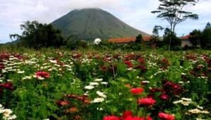 Gunung berapi aktif yang menawarkan tantangan mendaki dengan panorama indah dan udara sejuk pegunungan. Dekat dengan Tomohon.
