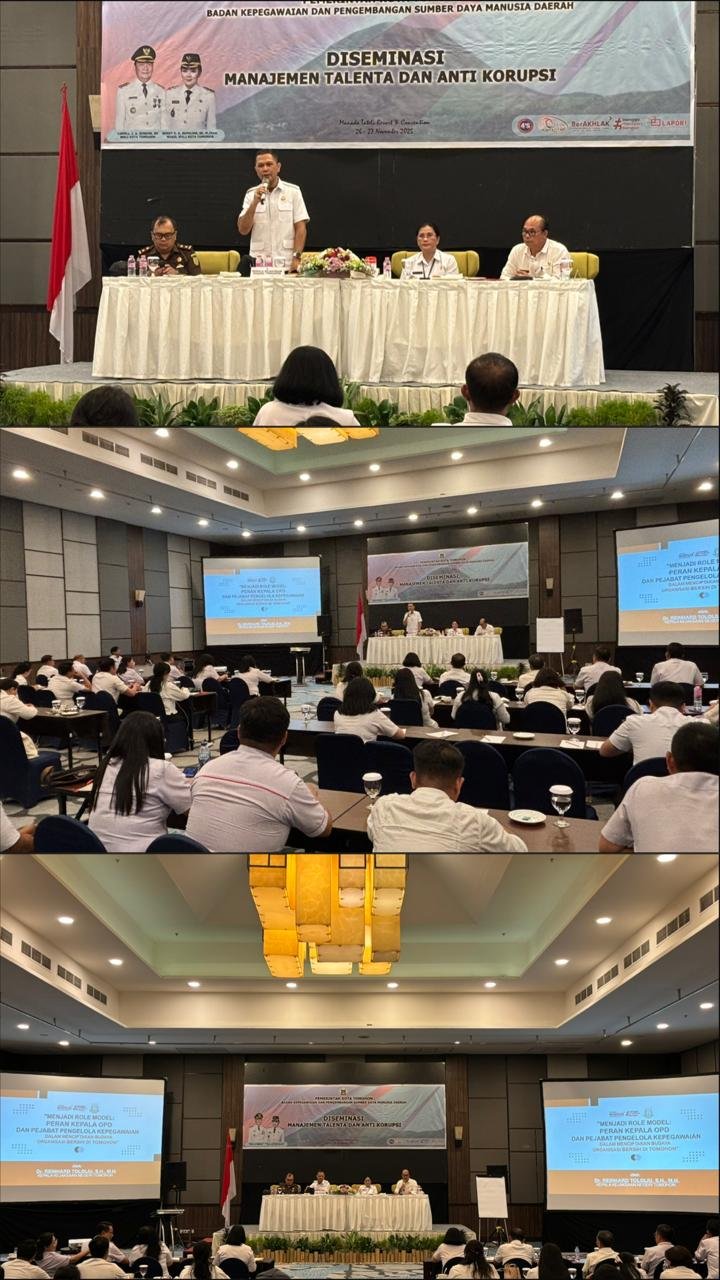 MINAHASA— Upaya membangun birokrasi bersih dan profesional di Kota Tomohon mendapat momentum penting lewat gelaran Diseminasi Manajemen Talenta dan Anti-Korupsi yang digelar Badan Kepegawaian dan Pengembangan Sumber Daya Manusia Daerah (BKPSDM) di Hotel Mercure Tateli, Minahasa.