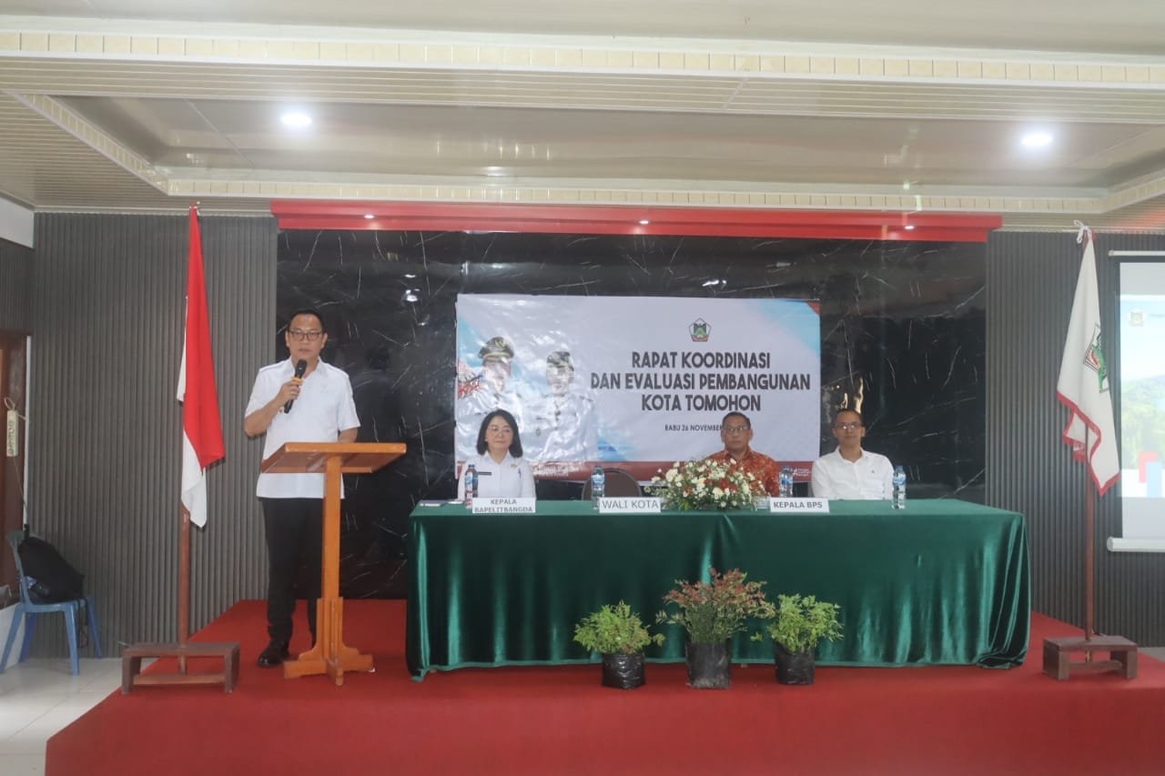TOMOHON-Wali Kota Tomohon, Caroll J. A. Senduk, secara resmi membuka Rapat Koordinasi dan Evaluasi Pembangunan (Rakorevbang) Kota Tomohon Tahun 2025 yang digelar di ruang rapat Inspektorat Kota Tomohon, Rabu, 26 November 2025.