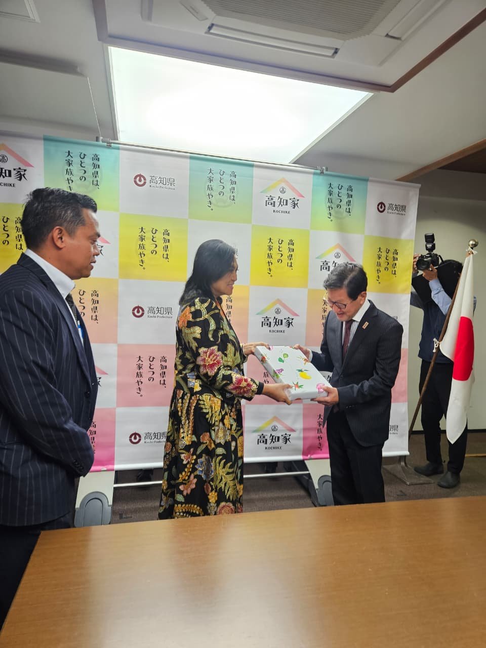 Gubernur Hamada menyampaikan apresiasi atas kunjungan dan komitmen Pemerintah Provinsi Sulut yang aktif mengirimkan tenaga kerja lulusan SMK ke Prefecture Kochi.