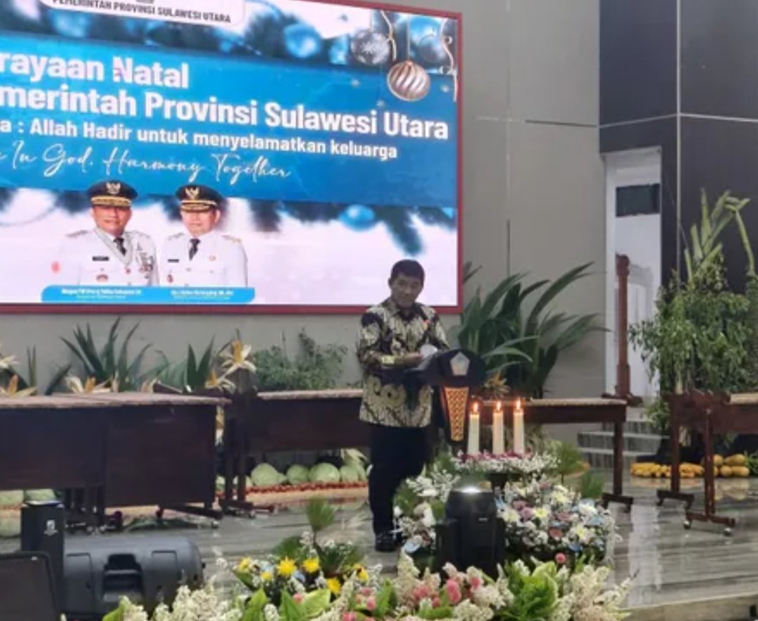 MANADO– Suasana sukacita dan khidmat menyelimuti Aula Mapalus Kantor Gubernur Sulawesi Utara saat Pemerintah Provinsi menggelar Ibadah Perayaan Natal Bersama, Kamis (18/12/2025).