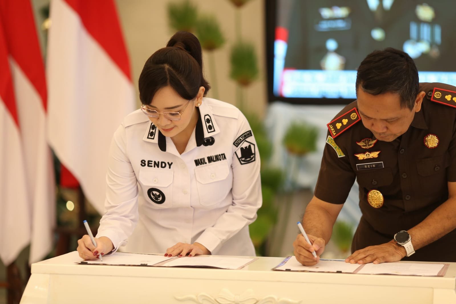TOMOHON-Wakil Wali Kota Tomohon, Sendy G. A. Rumajar, S.E., M.I.Kom., ikut hadir dan menandatangani Nota Kesepakatan penting dengan Kepala Kejaksaan Negeri Tomohon, Dr. Reinhard Tololiu, S.H., M.H., yang bertujuan memperkuat sinergi pelayanan pidana kerja sosial bagi pelaku tindak pidana di wilayah hukum Kejaksaan Negeri Tomohon.