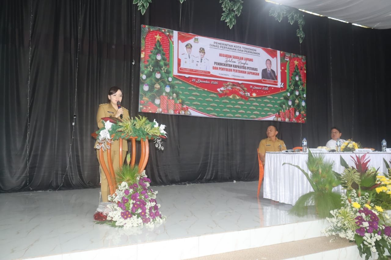 TOMOHON— Wakil Wali Kota Tomohon Sendy G. A. Rumajar, S.E., M.I.Kom., secara resmi membuka Sekolah Lapang dalam rangka peningkatan kapasitas petugas dan penyuluh pertanian lapangan Pemerintah Kota Tomohon.