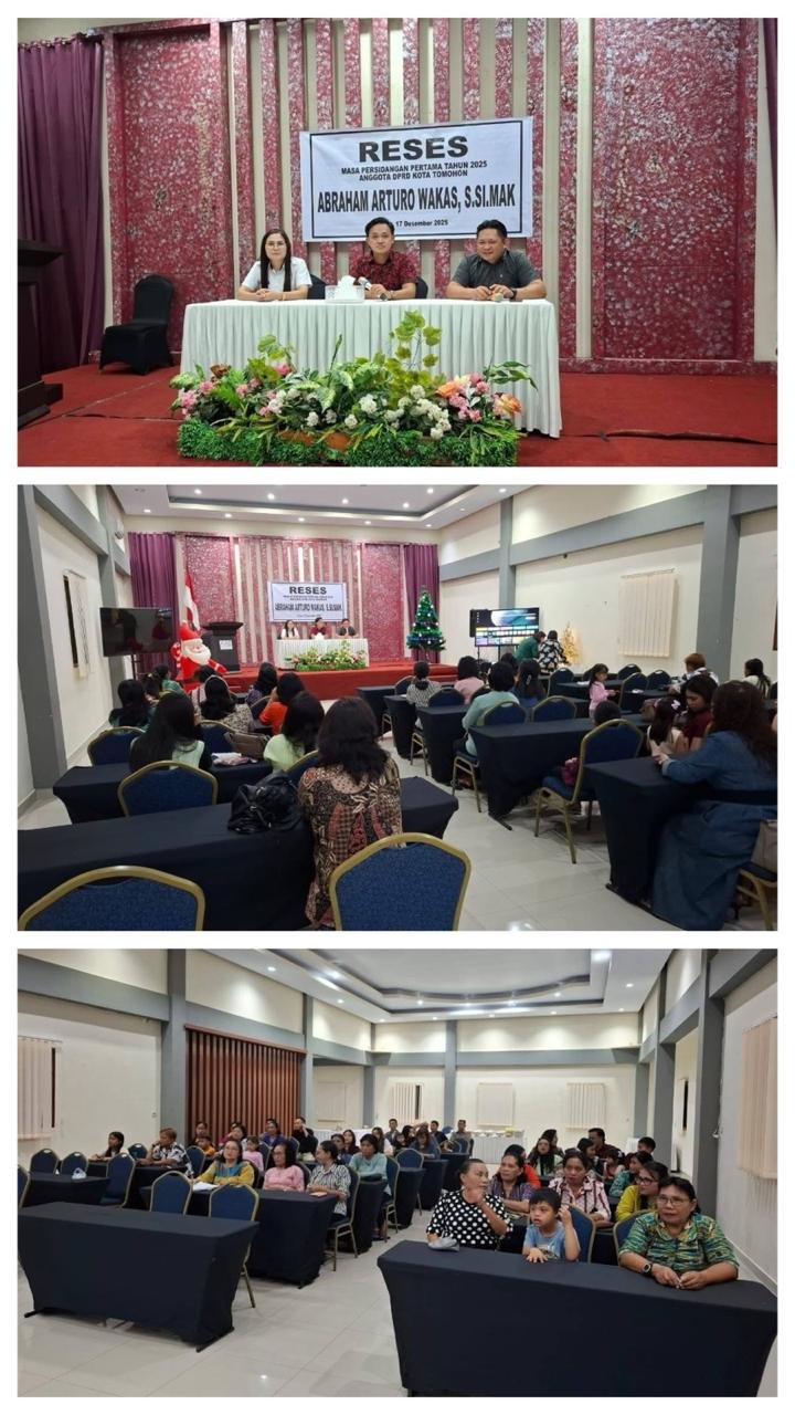 TOMOHON– Anggota DPRD Kota Tomohon, Abraham Arturo Wakas, S.Si, M.Ak, melaksanakan kegiatan Reses Masa Persidangan Pertama Tahun 2025, yang berlangsung di AAB Matani 1, Kecamatan Tomohon Tengah, Rabu (17/12/2025).