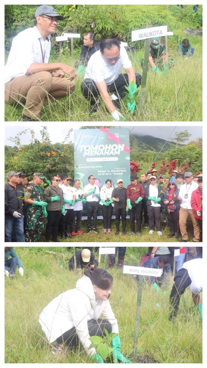 TOMOHON-Wali Kota Tomohon, Caroll J. A. Senduk, S.H., bersama Wakil Wali Kota Tomohon, Sendy G. A. Rumajar, S.E., M.I.Kom, menghadiri sekaligus mencanangkan Gerakan Tomohon Menanam dan Penanaman Penghijauan 23 Ribu Pohon dan Pohon Buah.