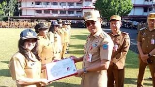 Apel dimulai dengan penghargaan pengabdian kepada PNS yang telah mencapai batas usia pensiun. Bupati Joune Ganda menyerahkan kenaikan pangkat pengabdian, pemberhentian dari jabatan, serta pensiun kepada delapan pegawai, sembari memberikan tali kasih Rp 2.500.000 per penerima sebagai apresiasi atas dedikasi selama bertugas.