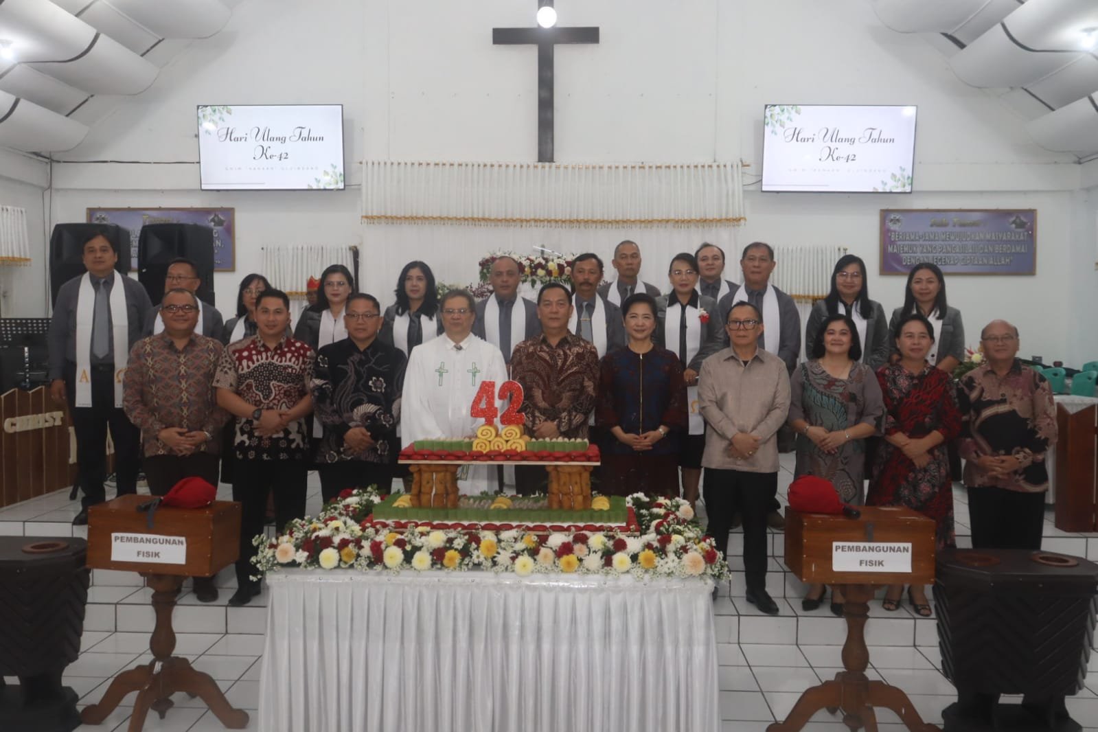 Ia menambahkan bahwa perjalanan pelayanan selama 42 tahun merupakan bukti nyata penyertaan dan kasih Tuhan yang terus mengalir dalam kehidupan jemaat.